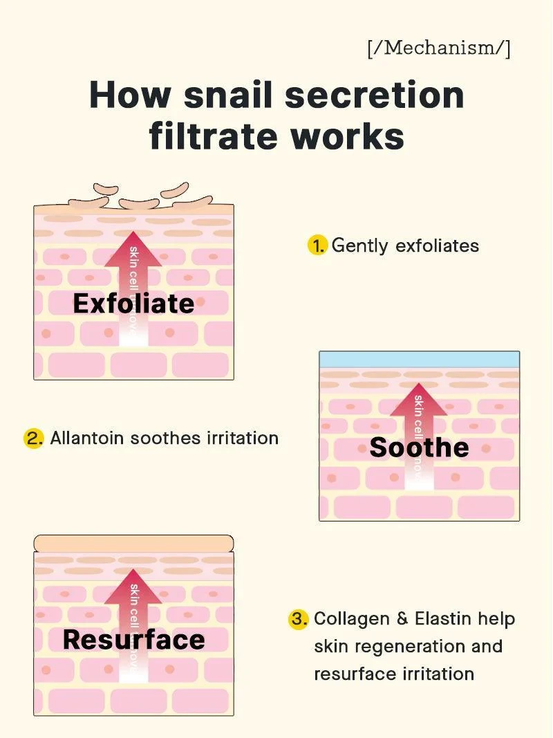 A complex that combines the existing hydrating and plumping effects of snail secretion filtrate and fortifies it with the anti-aging, pore contracting benefits of Black Snails and the anti-bacterial, antioxidant and UV protection effects of Gold Snails and more.