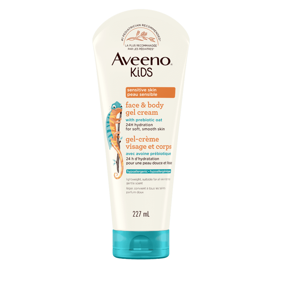 Moisturizes and nourishes your child's developing, sensitive skin. This fast-absorbing face and body gel cream for kids is formulated with prebiotic oat and is clinically proven to hydrate for 24 hours.