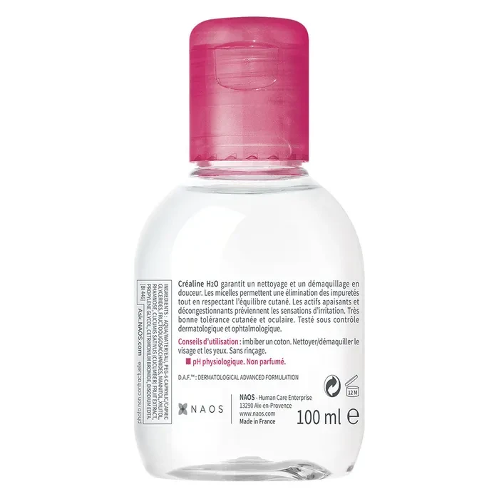 Bioderma cosmetics. Crealine h2o solution micellar peaux sensitive. The crealine h2o line is specific for sensitive skin, with intolerances, irritable, itchy and redness, as it soothes and relaxes the dermis and protects it from aggressions and prevents these uncomfortable symptoms. This micellar solution cleanses and removes makeup face and eyes (even waterproof makeup) leaving a pleasant feeling of freshness and well-being. Its formula does not contain perfume, alcohol or phenoxyethanol. Use in the morning and evening impregnating a cotton disc. It does not need rinsing but it is advisable to dry the skin after cleaning. Your face will be prepared for the usual moisturizer.