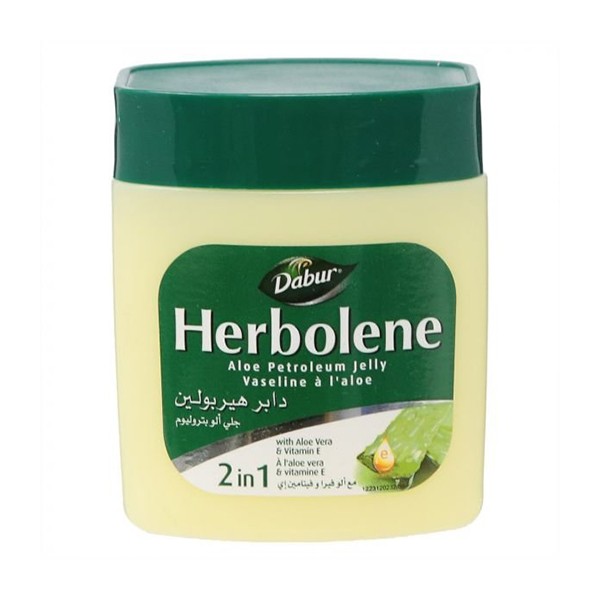 Dabur Herbolene Aloe Petroleum Jelly is a unique herbal-based formula that is fortified with the goodness of aloe vera and is rich in Vitamin E to effectively moisturize extremely dry skin, soothe chapped lips, smoothen knees and elbows, and heal cracked feet. Dabur Herbolene’s natural formula penetrates deep into the skin cells to provide intense nourishment for soft, supple, and hydrated skin. Its regular use nourishes and protects skin from harsh weather conditions and helps heal cuts and cracks. Dabur Herbolene is a safe emollient to use on any part of the body.