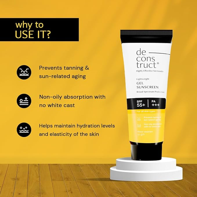 This broad spectrum Sunscreen for oily skin with SPF 55+ and PA+++ is a lightweight water-resistant formula that absorbs quickly into the skin leaving no white cast. It is blended with the unique formulation of Benzophenone-3, Butyl Methoxydibenzoylmethane and other chemical filters, along with hydrating agents such as phospholipids & glycerin that provides overall protection from harmful UV Rays, prevents sun-related skin ageing & tan, while keeping the skin hydrated. This sunscreen for oily face has a non-greasy, oil-free formula. This makes it an ideal product for those who are searching for an oil-free sunscreen.