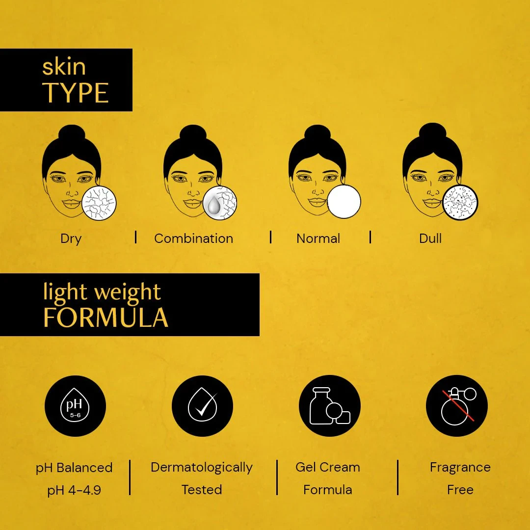 Radiance boosting ingredients- Niacinamide, Kojic Acid Dipalmitate and Vitamin C work together to provide luminosity and brightness. This cushiony Niacinamide cream gel moisturizer can be used as a single brightening product or in combination with other serums for a power packed performance.