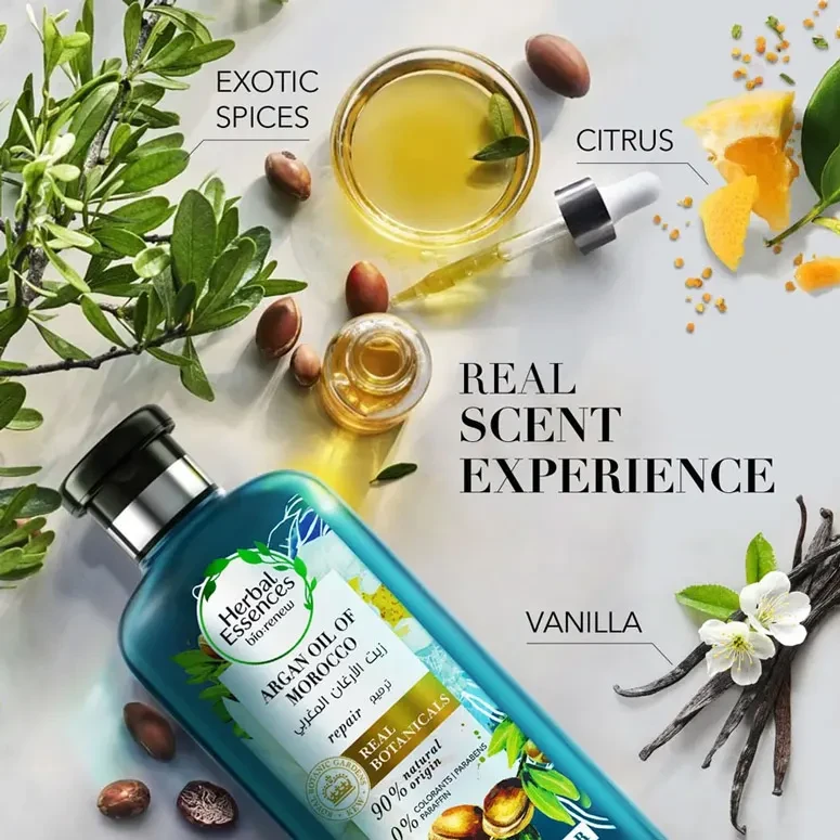 They’re crafted with a signature blend of essential antioxidants, aloe and sea kelp. Herbal Essences bio:renew helps to purify and protect your hair over time. The result? Soft, free-flowing hair. Herbal Essences bio:renew formula continues to work with each wash. Plus, you'll notice your hair become shininy, smooth and frizz-free. From the first pop of the cap, Argan Oil of Morocco conditioner will take you on a multi-layered scent experience to the warm sands of Morocco.