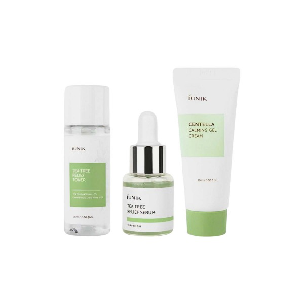 Tea Tree Relief Toner: a calming enriched with 67% of Centella Asiatica Leaf Water and 20% of Tea Tree Leaf Water to calm and moisturize sensitive skin.