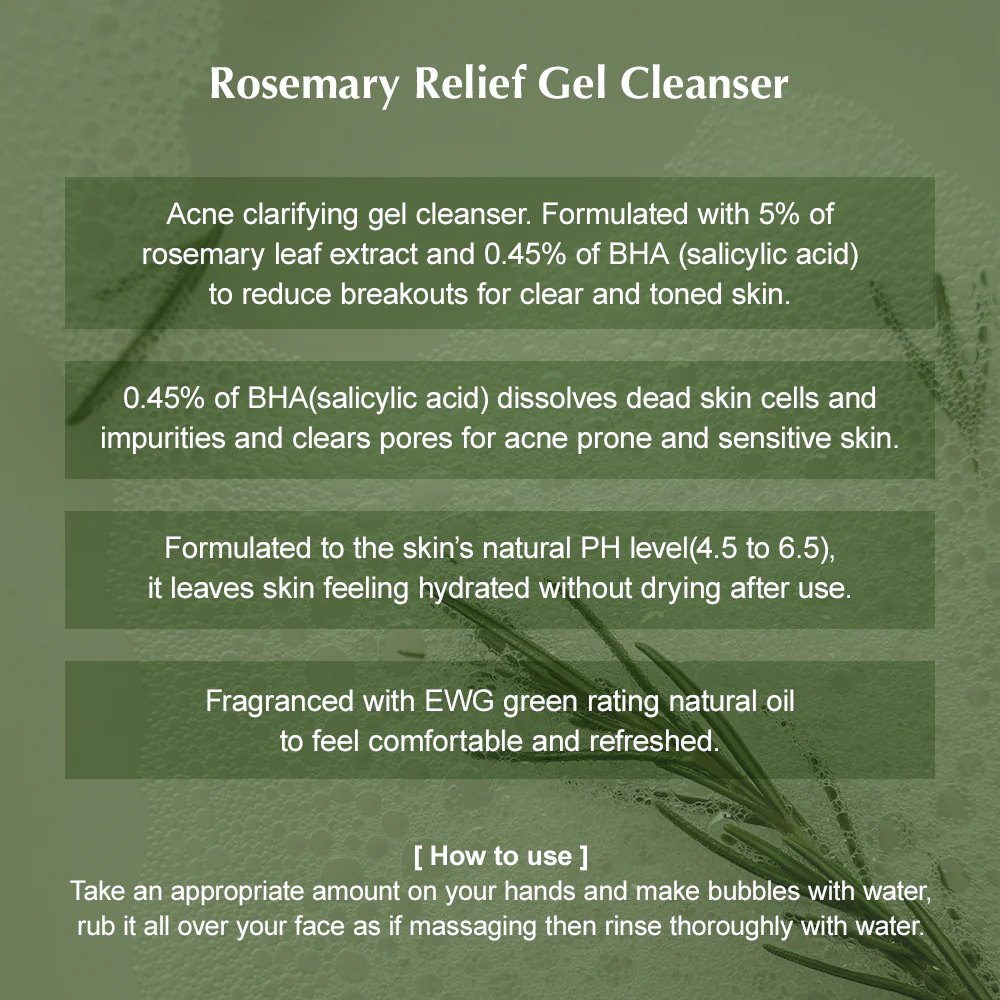 Rosemary Relief Gel Cleanser effectively tackles breakouts and impurities while maintaining your skin's natural pH balance, leaving you feeling comfortably refreshed and beautifully clear.