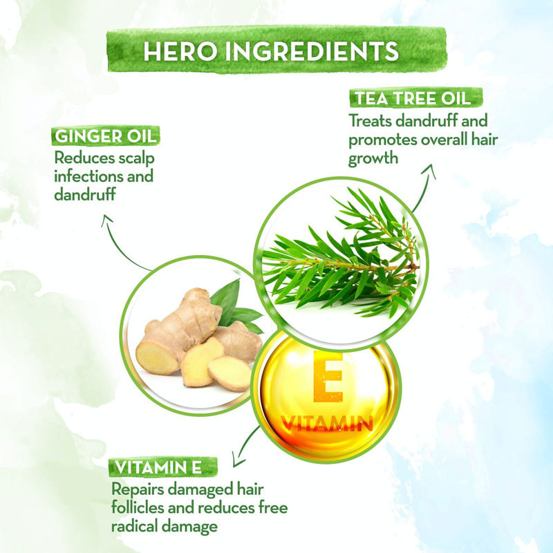 • Reduces Itchy Scalp: Tea tree oil’s beneficial properties help in reducing itch & buildup, whereas Ginger Oil contributes to the health and cleanliness of the scalp while relieving dryness and itchiness