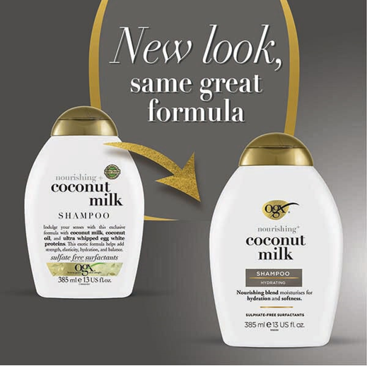 Find your perfect hair match with OGX, now with NEW upgraded pH balanced formulas for salon-quality, gentle cleansing that will help give you stronger hair with more shine, less frizz and long-lasting smoothness. OGX Nourishing+ Coconut Milk helps to add strength, elasticity and hydration into hair. This tropical blend helps bring out your hair's natural strength and moisturises for total nourishment.