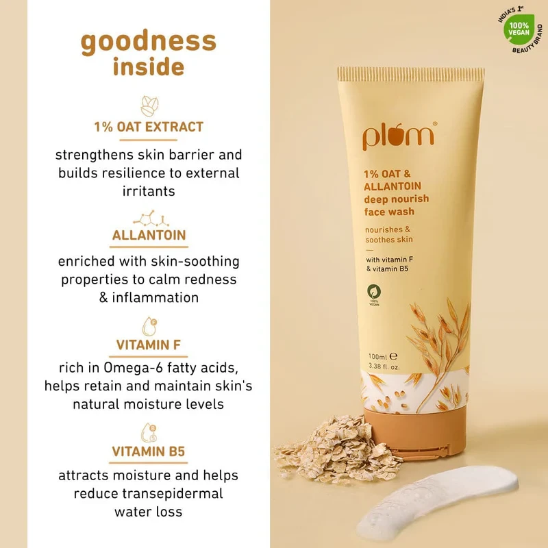 the formula helps retain skin moisture without causing dryness.This creamy soft face wash is enriched with Oat extract that calms