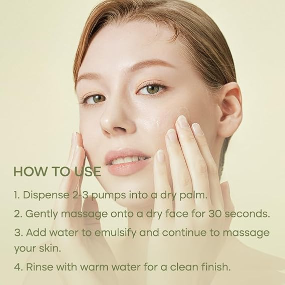 3. Beginning with a dry face and hands, dispense 2-3 pumps of the cleansing oil into your palm.