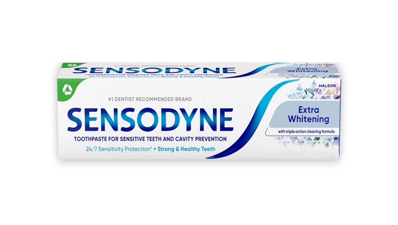 Sensodyne Extra Whitening Toothpaste for Sensitive Teeth is an SLS free toothpaste that helps remove stains for a whiter smile as it provides daily protection for sensitive teeth. This potassium nitrate and sodium fluoride toothpaste delivers sensitive teeth whitening by polishing away surface stains while working deep inside teeth to build soothing protection around the nerves, decreasing sensitivity in as little as two weeks with twice daily brushing. Sensodyne Extra Whitening toothpaste offers all the anticavity and fresh breath benefits of regular anticavity toothpaste and comes with a formulation that reduces tartar build-up for cleaner, smoother and healthier teeth. Enjoy 24/7 sensitivity protection and relief using this sensitive teeth whitening toothpaste in the morning and the evening. Get lasting protection from tooth sensitivity with Sensodyne.