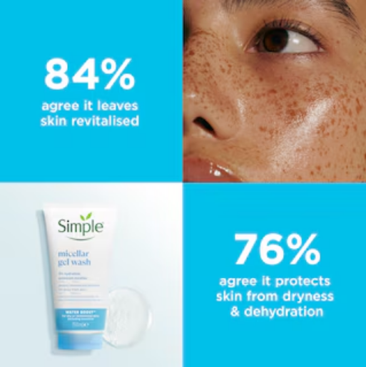 Simple Water Boost Micellar Facial Gel Wash, a new generation face wash that delivers instant hydration and gentle yet effective cleansing. Lightweight on your skin, the micellar cleansing bubbles glide over your face, attracting make-up and dirt while leaving skin instantly refreshed.