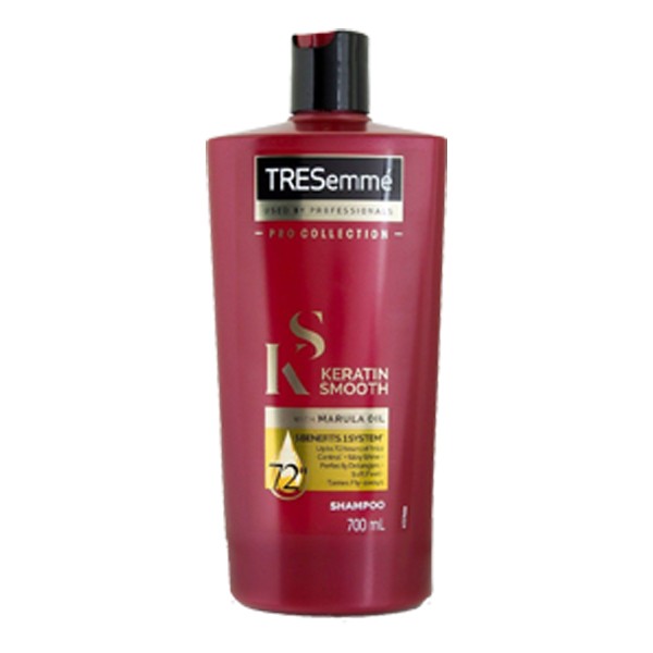 Specially formulated to fight frizz, detangle knots, boost shine, add silky softness and tame those pesky flyaways, TRESemmé Keratin Smooth, with Keratin and lush Marula oil from Africa, gives you five smoothing benefits in one system, for hair that’s silky smooth but still full of natural movement.